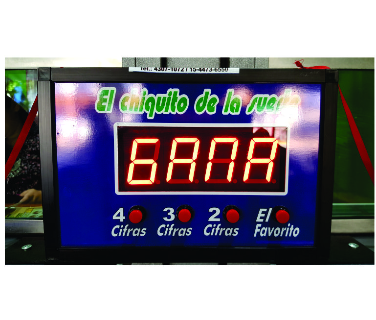 EL CHIQUITO DE LA SUERTE Cod.: 907 EXCELENTE INCENTIVADOR PARA MOSTRADOR. POSEE 4 BOTONES PARA JUGAR CON 2,3 Y 4 CIFRAS Y EL FAVORITO RAPIDO CON DISPLAY DE 1.8" SUPER BRILLO Y LAS LEYENDAS JUGA Y GANA. MEDIDAS 28 CMS X 18 CMS. Precio $0,00 Cantidad Comprar